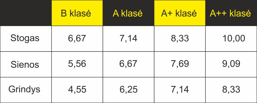 • Šilumos laidumo koeficientas λ = 0,034 W/m·K